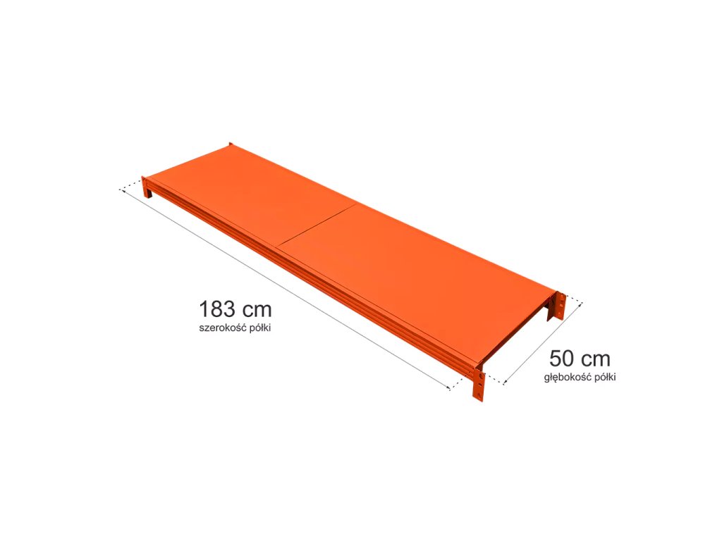 Úložný regál FORTIS LIGHT s 8 policemi poskytuje velkouúložnou plochu s kompaktními rozměry 200 cm na výšku, 392,5 cm na délku, 50 cm do hloubky a každá police unese až 200 kg. K regálu lze dokoupit další police.