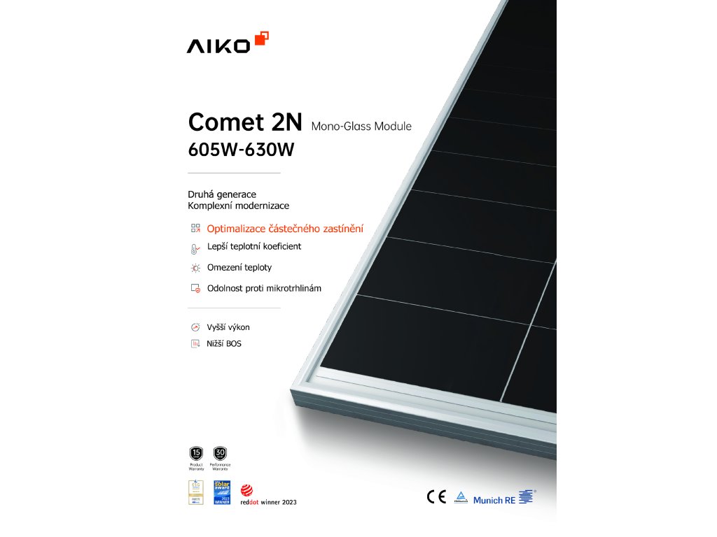 AIKO Comet 2N A620-MAH-72MW - 2. generace - řada Comet 2N Mono-Glass Module - stříbrný rám - výkon 620 Wp