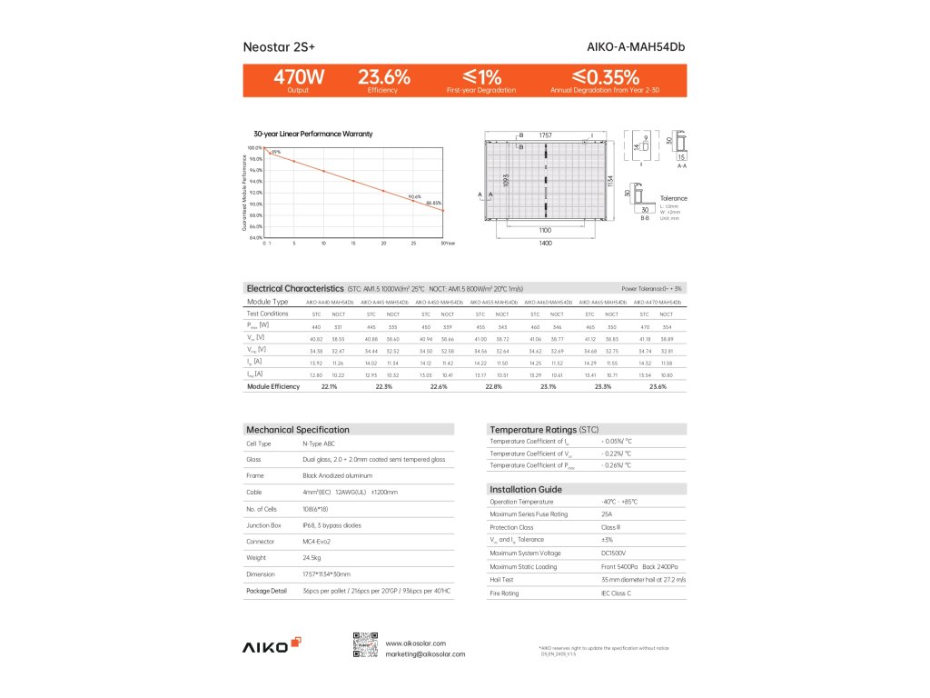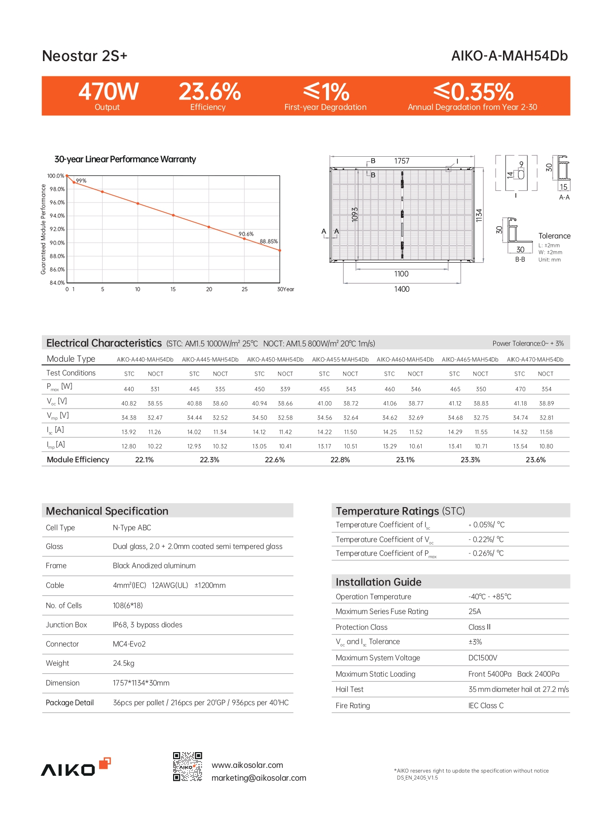 AIK0 Neostar 2S+ 465Wp Full Black Dual-Glass 23,3% AIKO-A465-MAH54Db