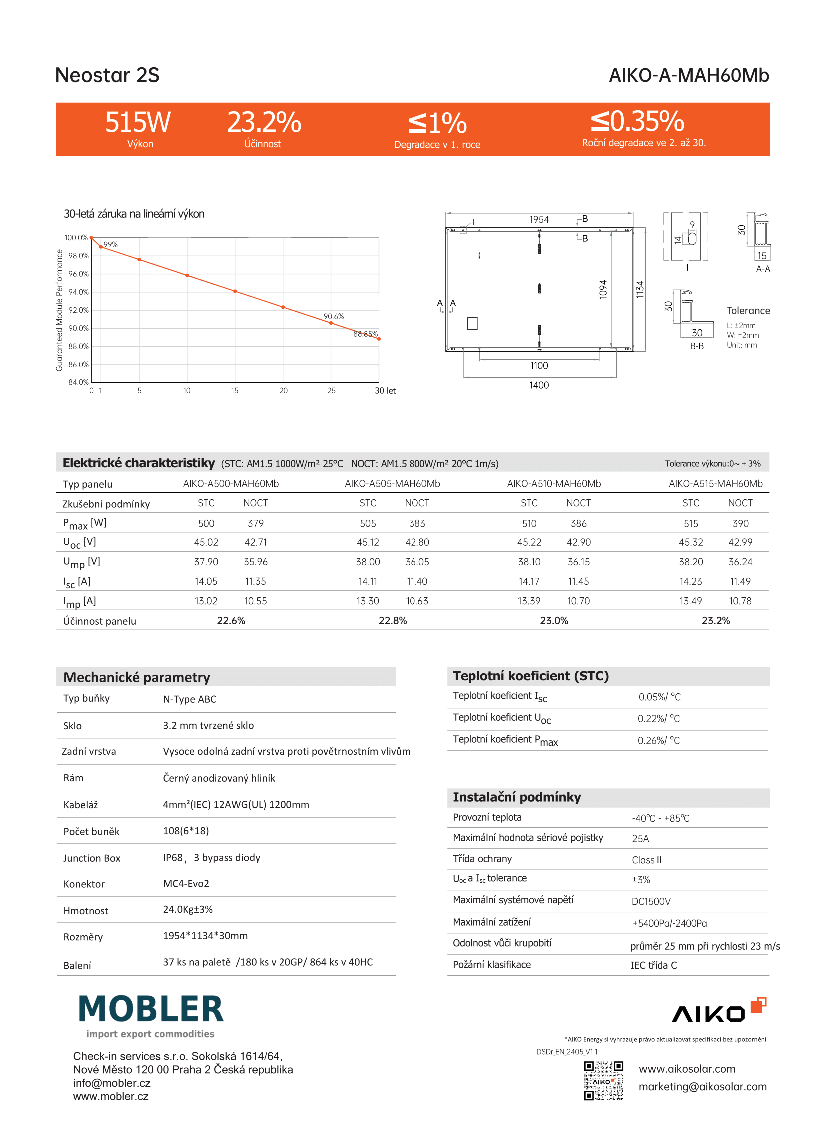 AIKO-A500-MAH60Mb - 2.generace - Řada Neostar 2S Mono-Glass Module - celočerný rám - výkon 500 Wp