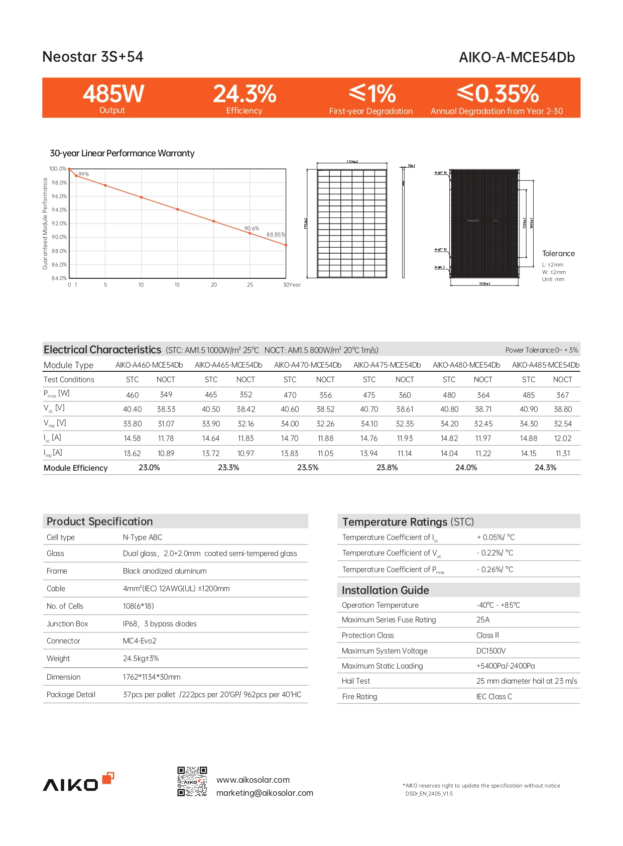 AIKO-A475-MCE54Db - 3.generace - Řada Neostar 3S+54 Dual-Glass Module - celočerný rám - výkon 465 Wp