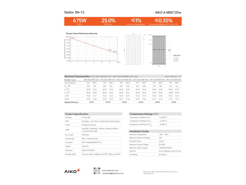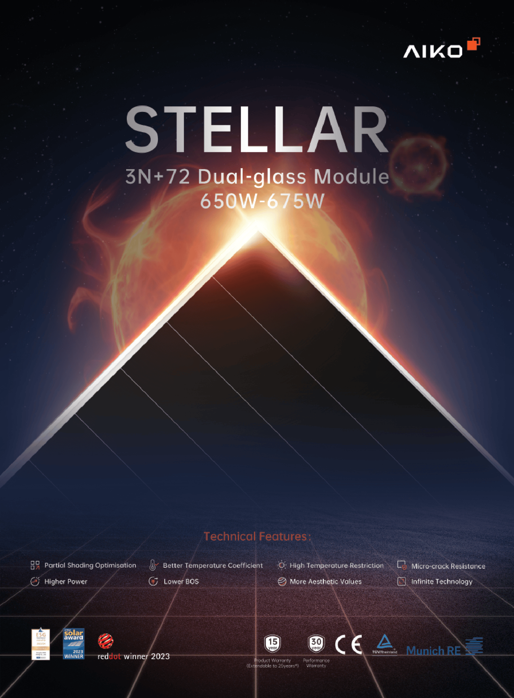 AIKO Stellar 3N+ je ideální volbou pro projekty, kde je klíčový maximální výkon na panel, dlouhodobé výnosy a vysoká provozní bezpečnost.