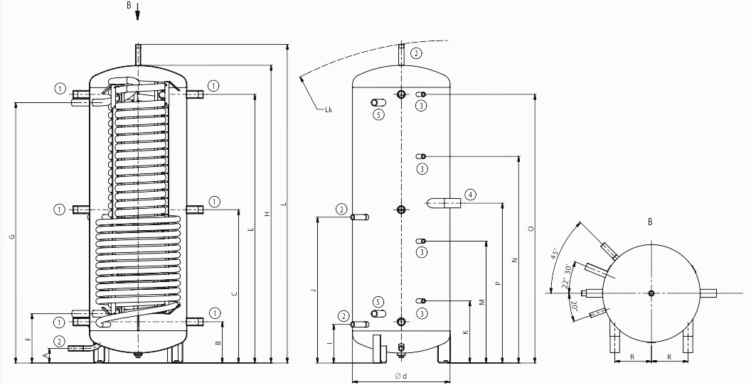 Nádoba obsahuje ocelový trubkový výměník o ploše 2,2 nebo 3,3 m2 pro připojení dalšího topného systému (např. SOLAR). Ocelový trubkový výměník nelze použít pro průtokový ohřev teplé užitkové vody.