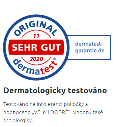- Dermatologicky testováno s hodnocením „velmi dobré“