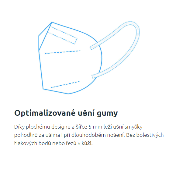 - Vysoký komfort nošení díky elastickým poutkům na uši a integrované sponě na nos