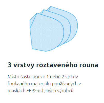 - 5 vrstev: 3x meltblown rouno, 2x spunbond rouno