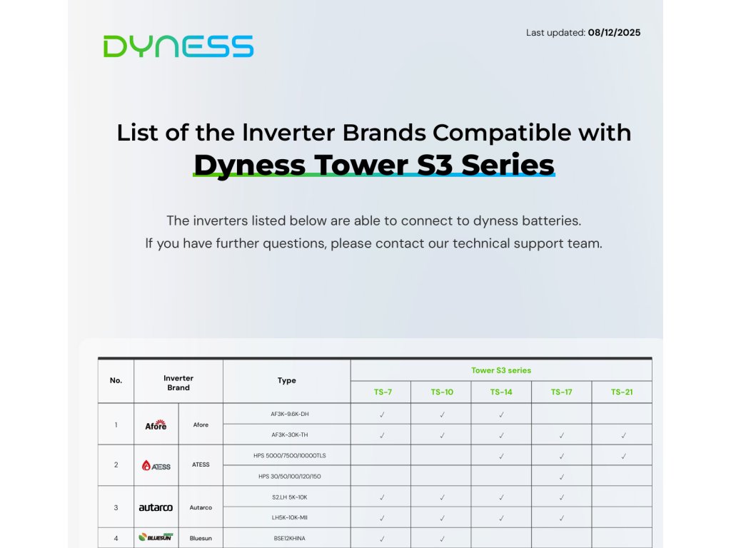 Dyness Tower S3 je kompatibilní s desítkami předních výrobců hybridních střídačů, včetně: