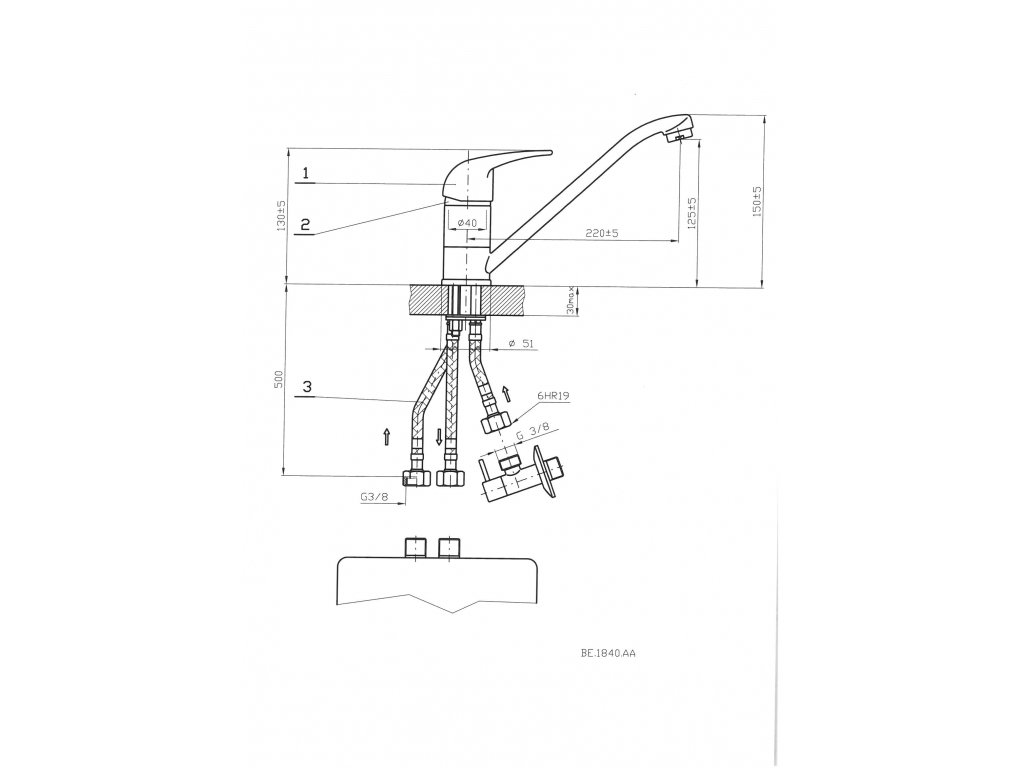 Beztlaková stojánková páková baterie pro beztlakové ohřívače vody BE. 1840. AA DRAŽICE