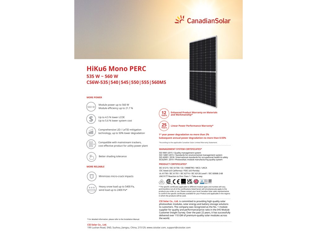 Canadian Solar 555W Silver Frame 21,5% SVT36042 / CS6W-555MS
