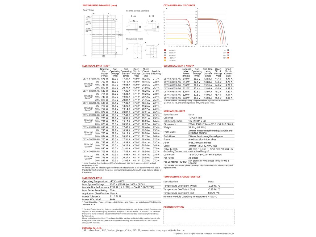 Canadian Solar TOPBiHiku7 N-type Bifacial TOPCon Technology - CS7N-700TB-AG - výkon 700 - bifaciální - stříbrný rám