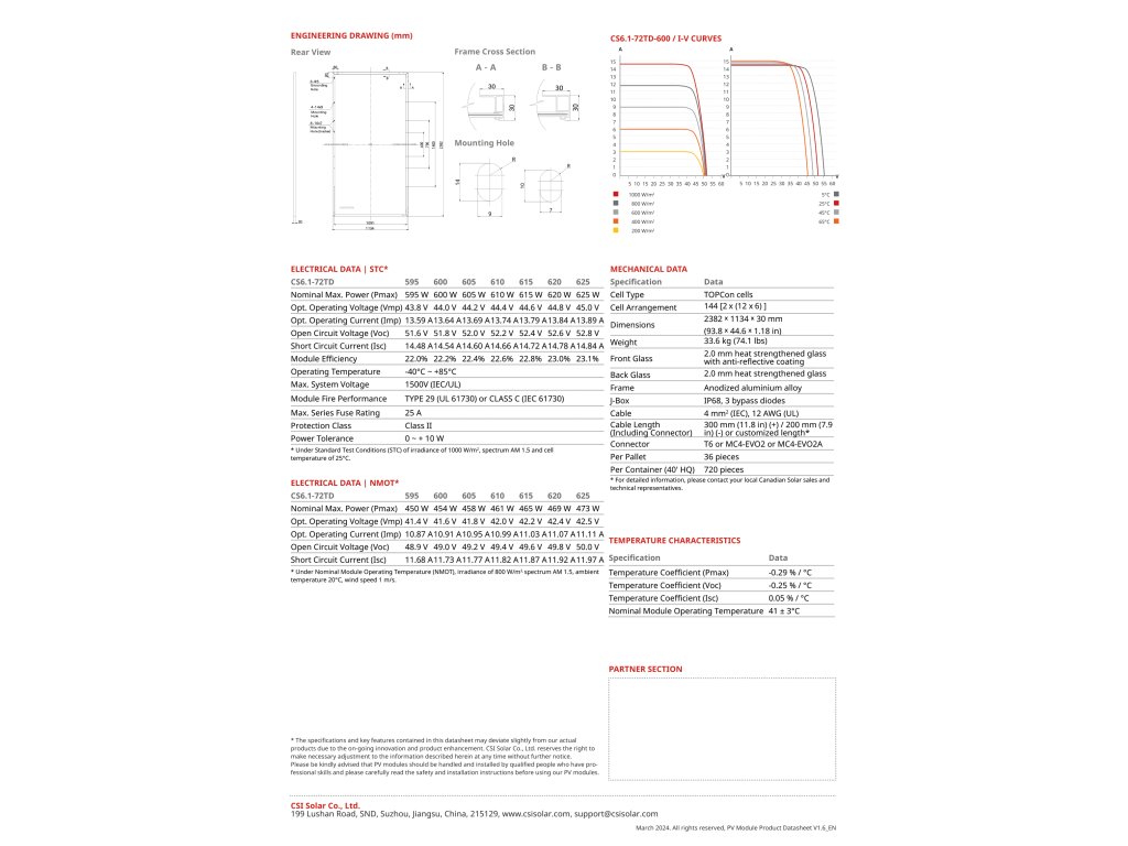 Moduly CS6.1 z monofaciálního skla/skla využívají technologii TOPCon typu N. Tato technologie článků zvyšuje energetický výnos fotovoltaických systémů a nabízí jednu z nejkonkurenceschopnějších úspor BOS (balance of system) a LCOE (Levelized cost of electricity) pro solární elektrárny ve srovnání s moduly PERC.