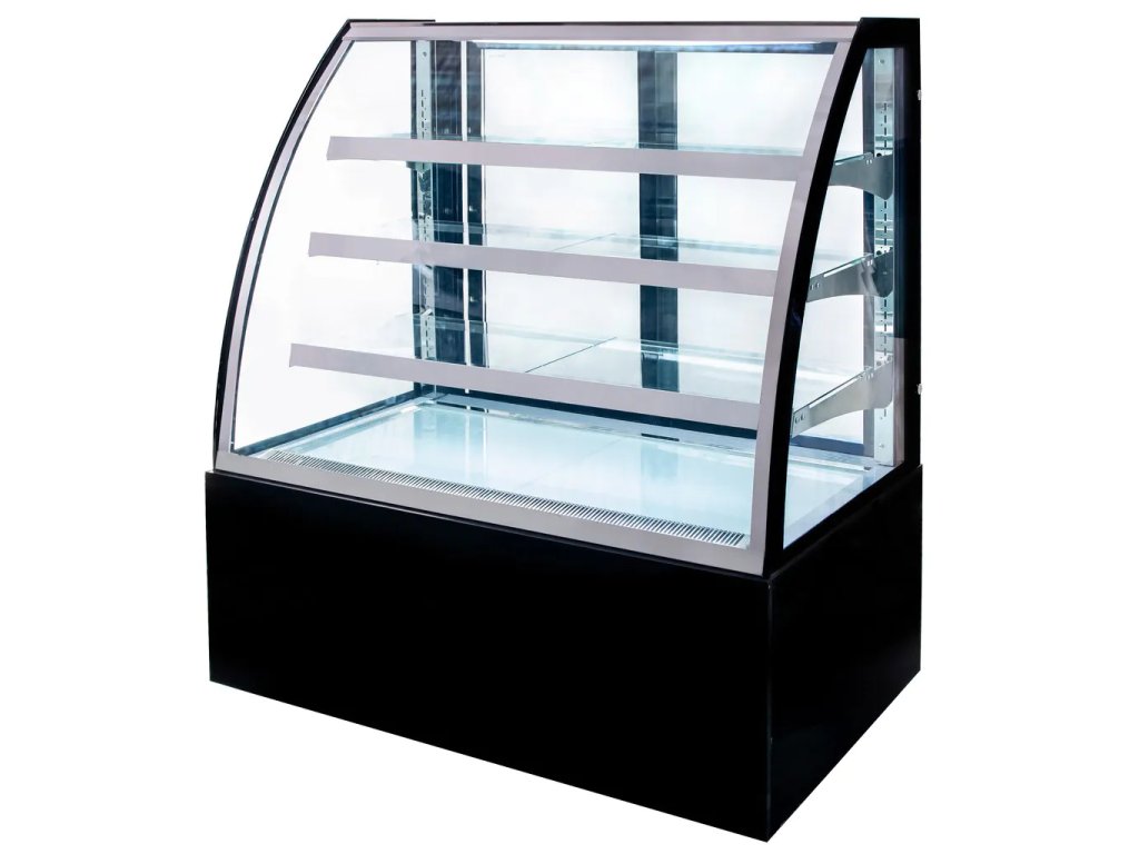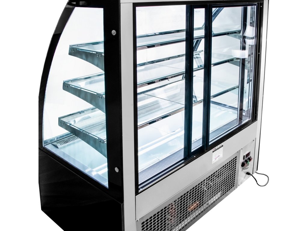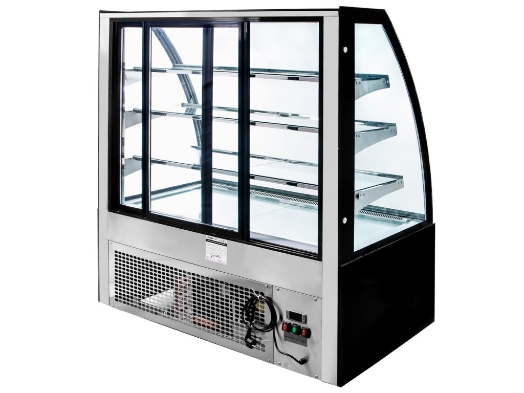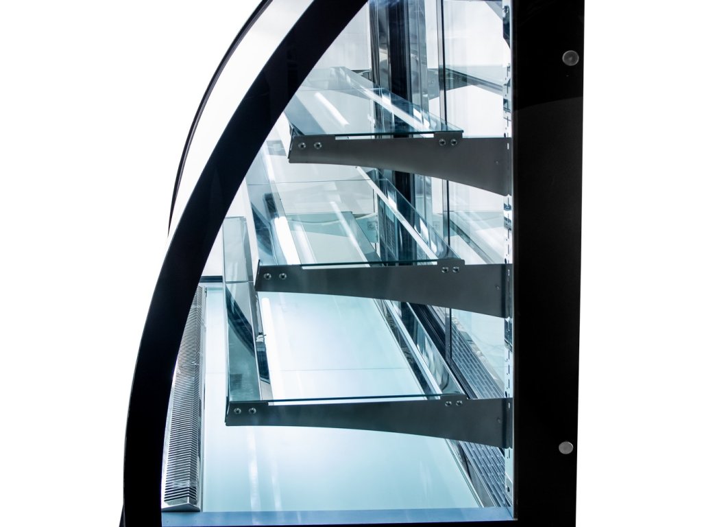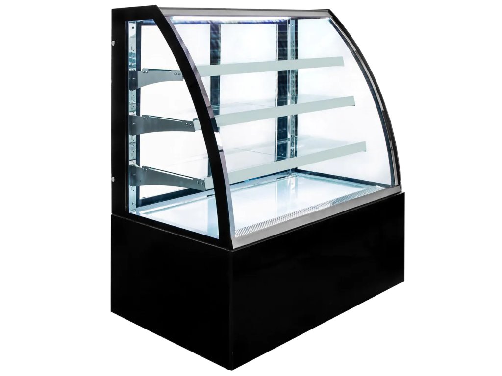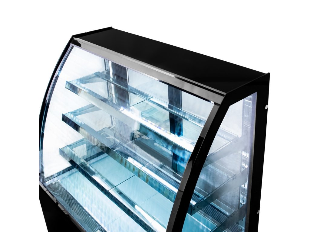 - Cukrářská vitrína s ohýbaným dvojsklem.