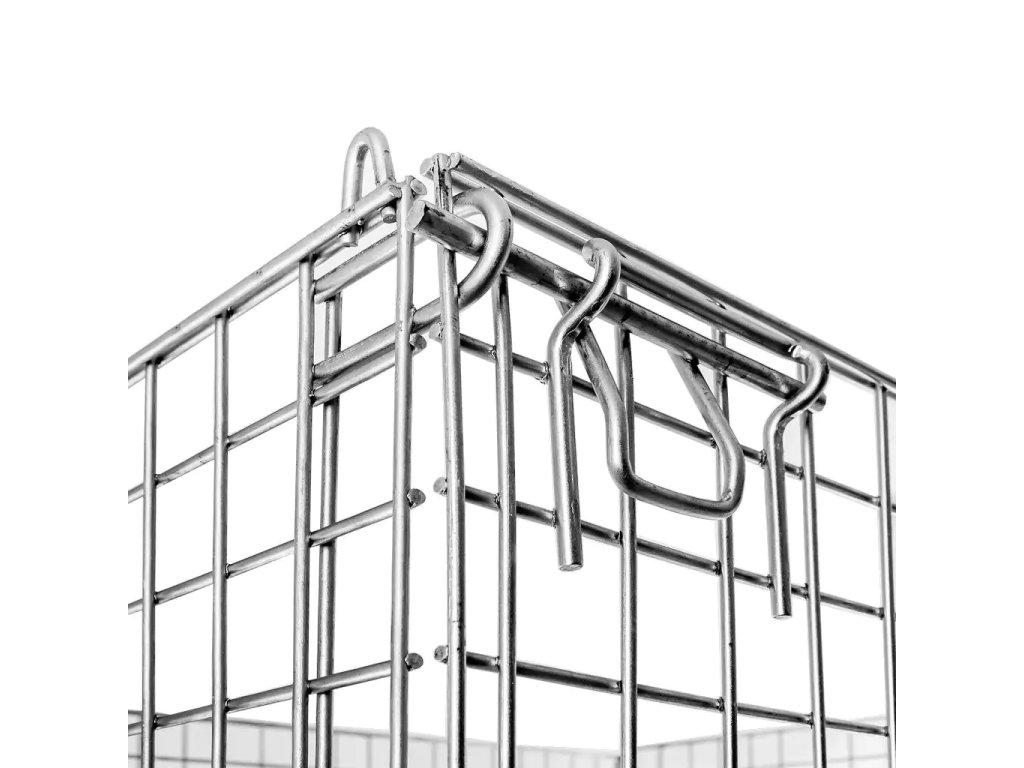 Gitterboxy jsou ocelové kontejnery se sklopnou klapkou na kratší straně. Díky otvoru lze zboží kdykoli vložit a vyjmout, což je ideální pro skladování a přepravu drobného zboží. Paletové regály jsou vyrobeny z pozinkovaného drátu(průměr 4 mm) a jsou odolné vůči změnám teploty a vlhkosti. Drátěné koše se používají v různých komerčních a průmyslových aplikacích. Skvěle se hodí k udržování pořádku, přepravě drobných výrobků, přenášení těžkých předmětů a vystavování zboží v nákupních centrech. Koše z kovového pletiva pojmou až 800 kg nákladu.