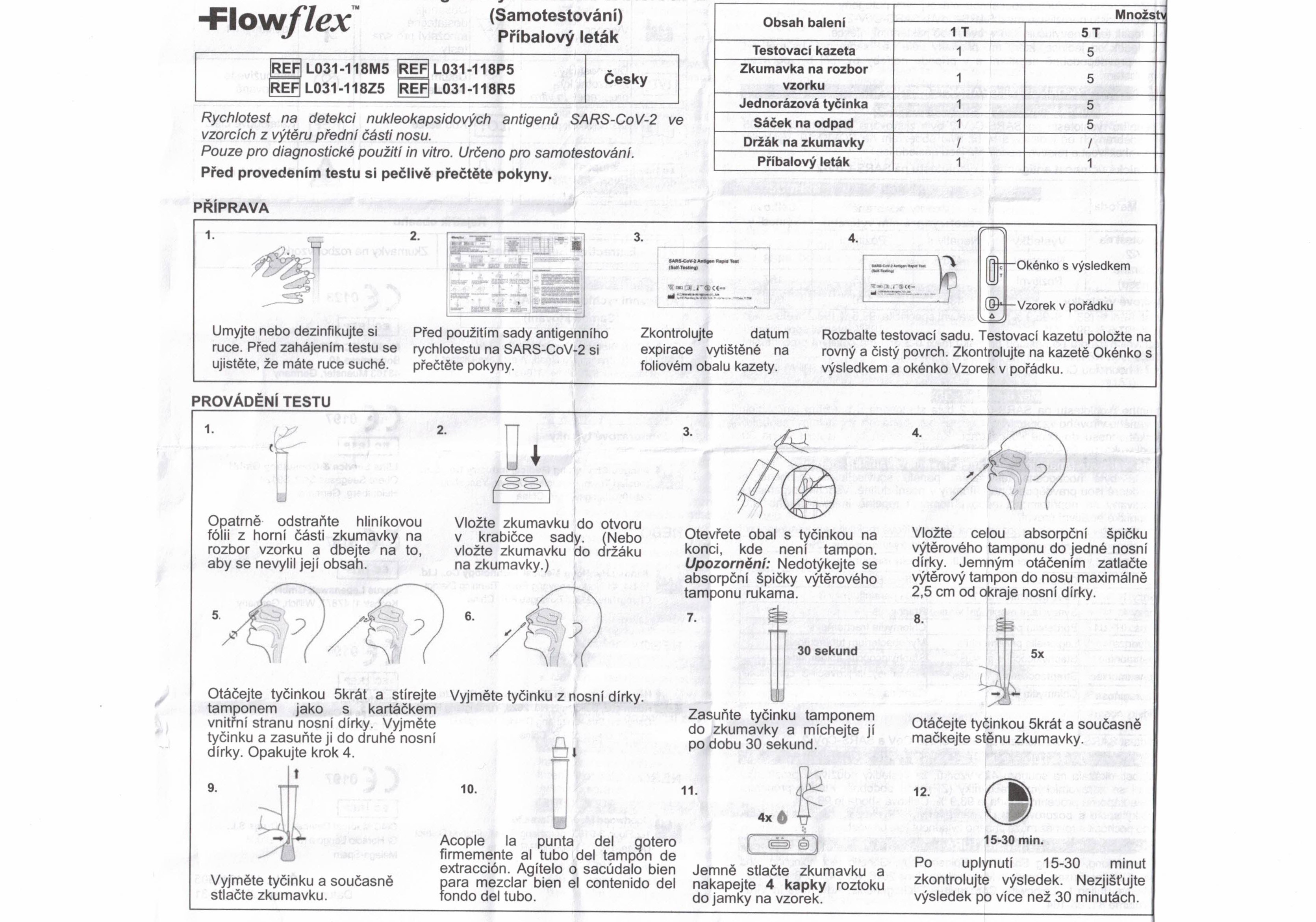 Test na Covid 1ks (do nosu pro domácí použití) Značka: Flowflex