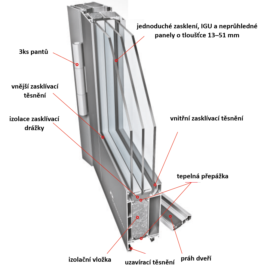 Tloušťka výplně: křídlo 13–51 mm (podle toho jestli zvolíte plnou výplň nebo dvojsklo/trojsklo)
