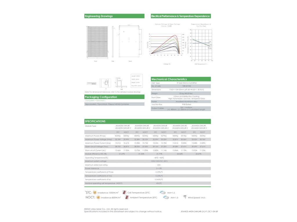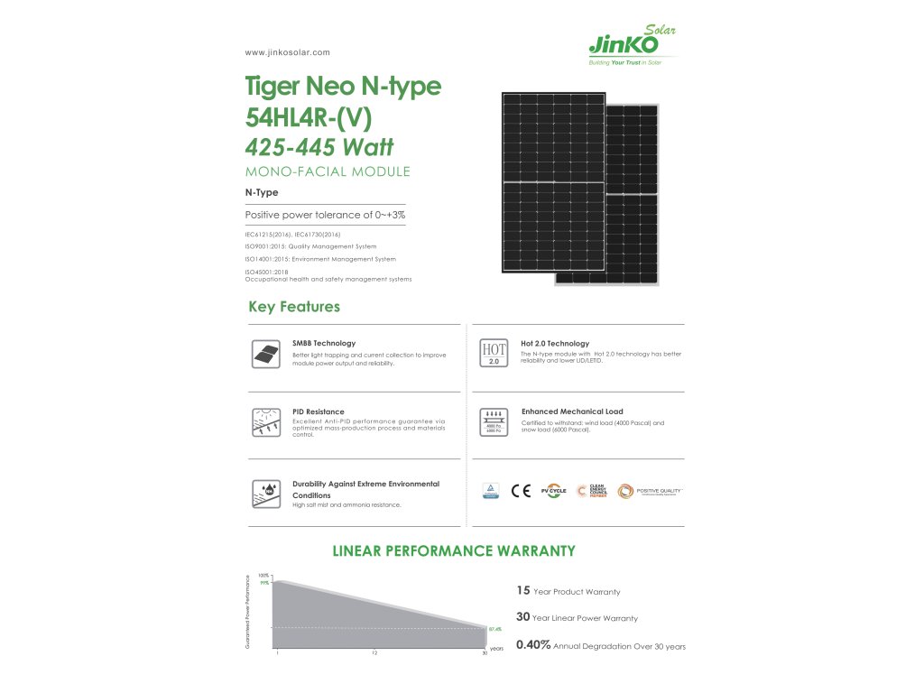 JINKO Tiger Neo N-type 440W Black Frame 22.02% SVT34978 / JKM440N-54HL4R-V