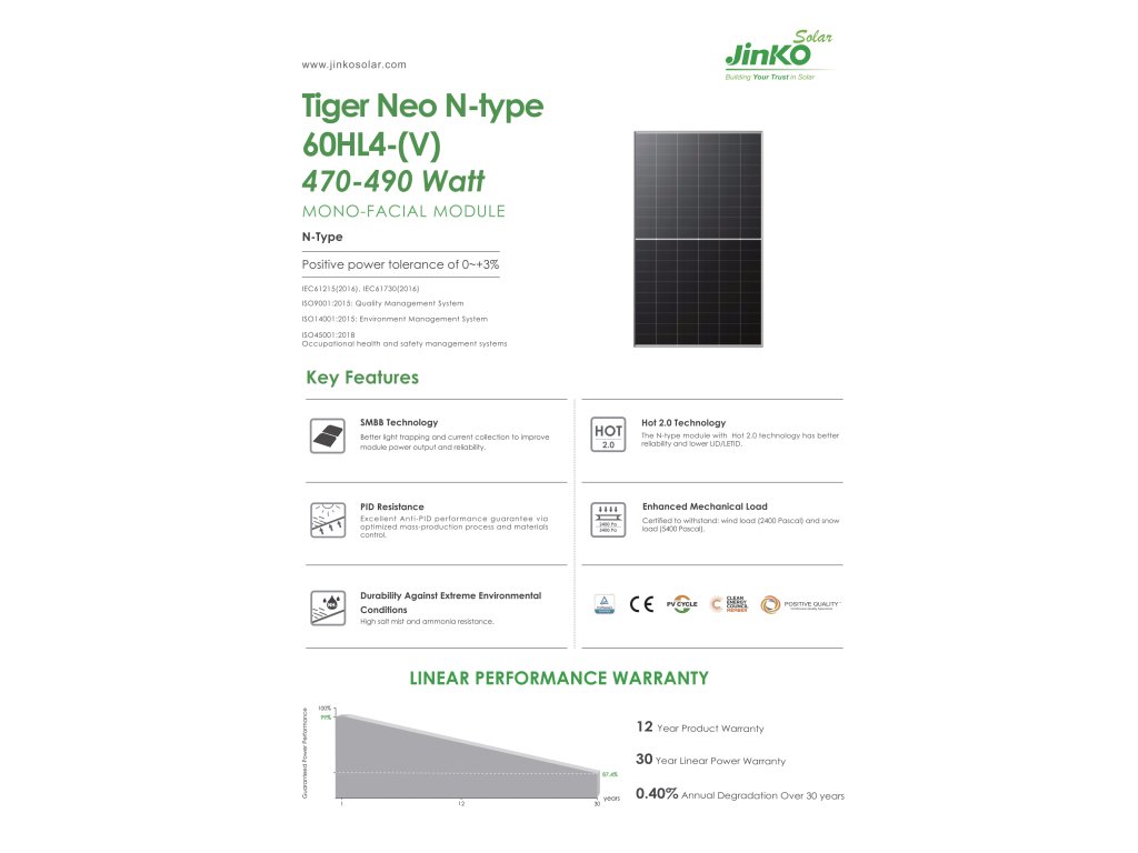 Jinko Solar JKM485N-60HL4-V 30mm Tiger Neo Black Frame JK03M