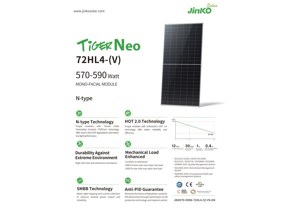 JINKO Tiger Neo N-type 585W Silver Frame 22.65% SVT35874 / JKM585N-72HL4-V
