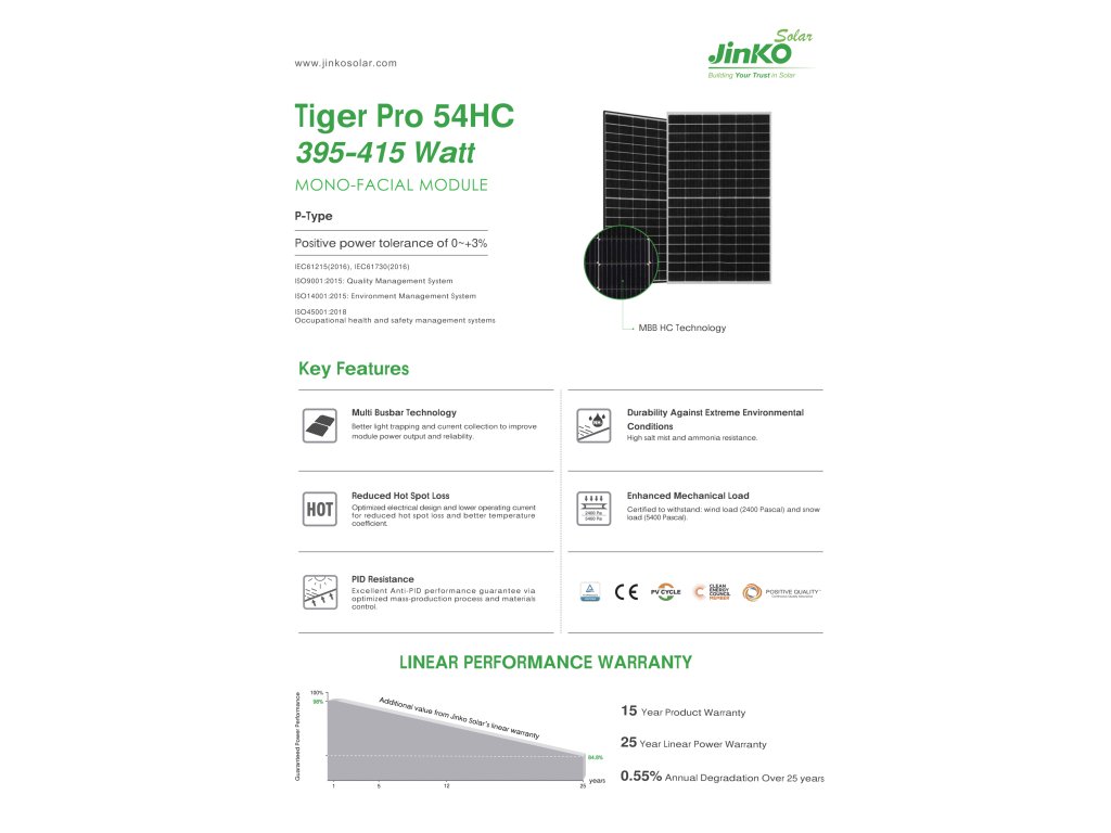 JINKO Tiger Pro P-type 405W Black Frame 20.74% SVT33154 / MM405-54HLD-MBV