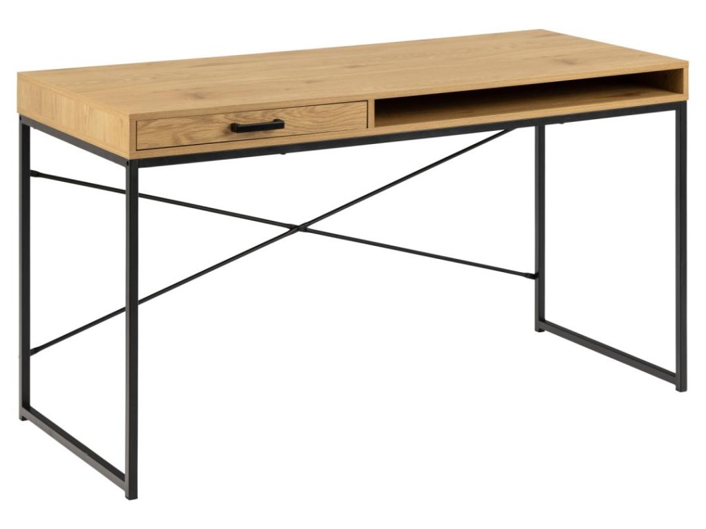 Kancelářský stůl Seaford, horní deska melamin matný wildoak, podnož ocel matná černá, 140x58x76 cm