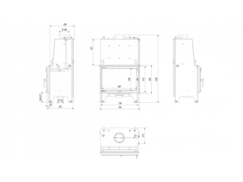 | Vybavení | Dekorativní skleněné sklo, Načítání spalovací komory, Příjem vzduchu |