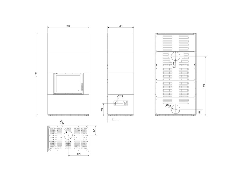 Teplovodní krbová vložka Kratki FLOKI BOX 8 kW Ø 160 křemenný sintr NERO ASSOLUTO