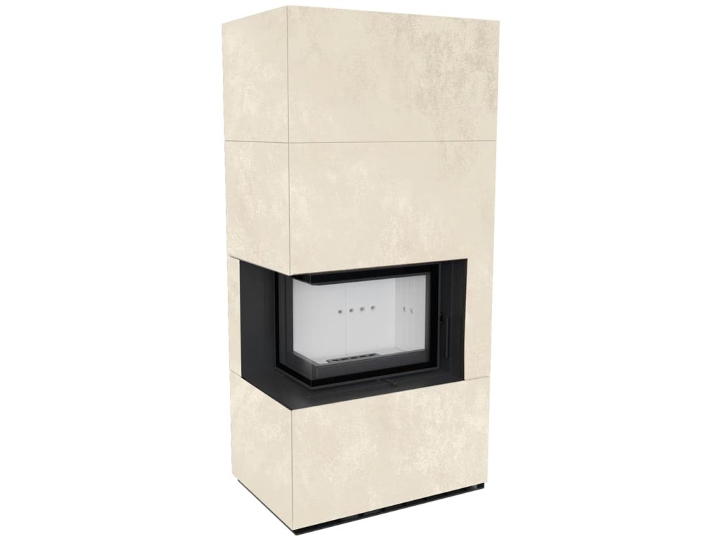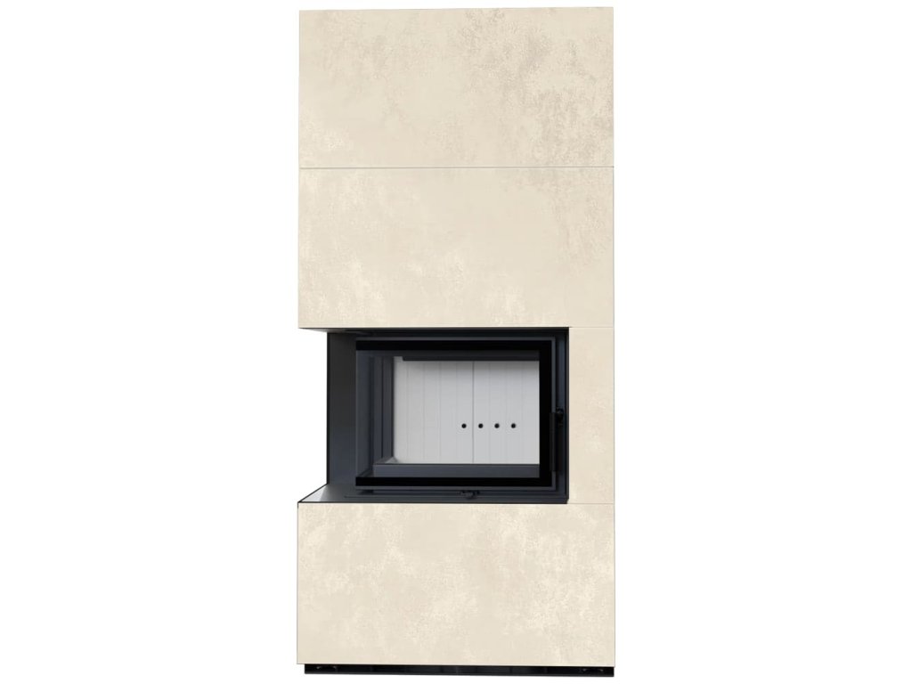 Teplovodní krbová vložka Kratki FLOKI BOX zanechal 8 kW Ø 160 v konstrukci z porcelánové kameniny OXIDE BIANCO