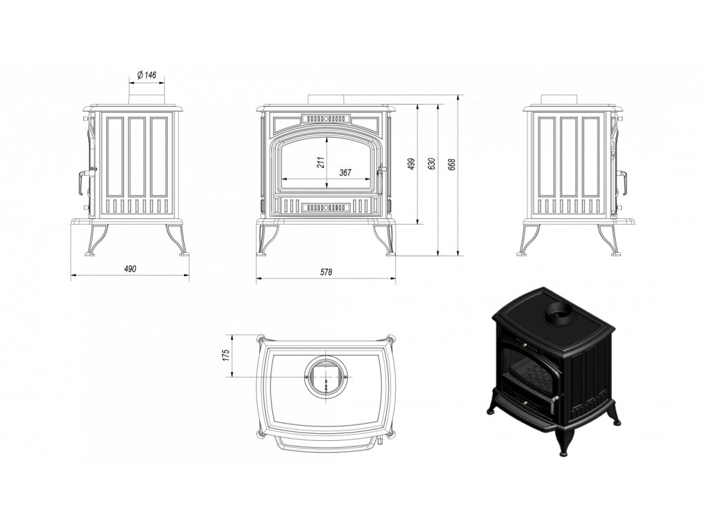 Krbová kamna KOZA K6 (130mm / 150mm) - černá