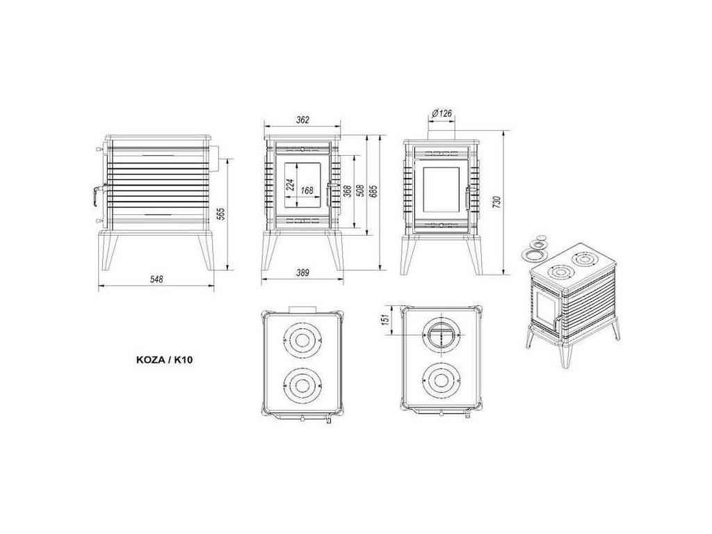 Krbová kamna KOZA K10 - černá
