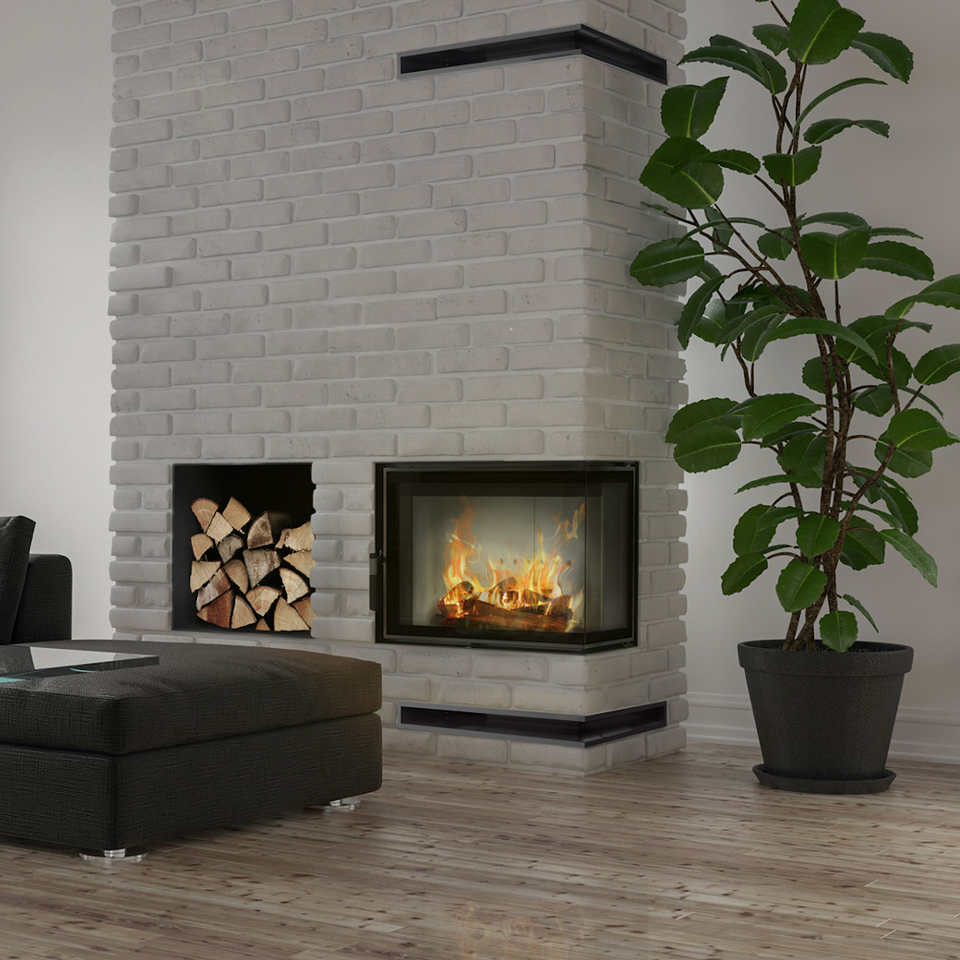 Teplovzdušná krbová vložka Kratki LUCY 12 SLIM P BS (BLACK) pravé boční prosklení
