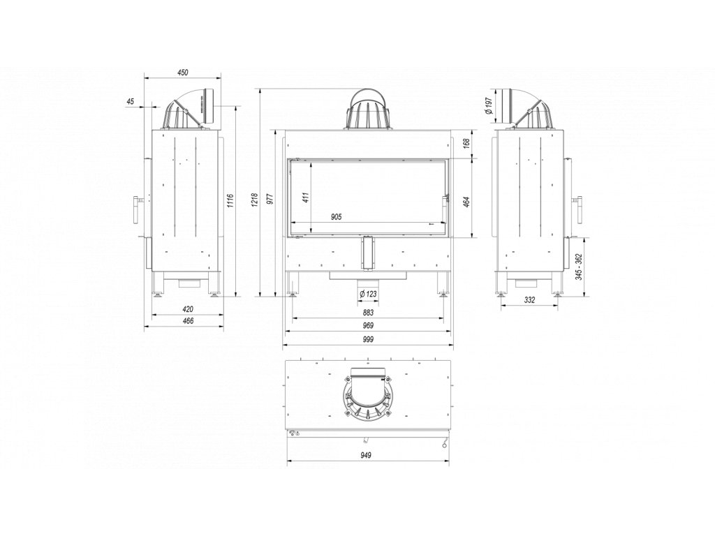 - Prohloubená spodní deska zvyšující kapacitu spalovací komory a zabraňující úniku popela