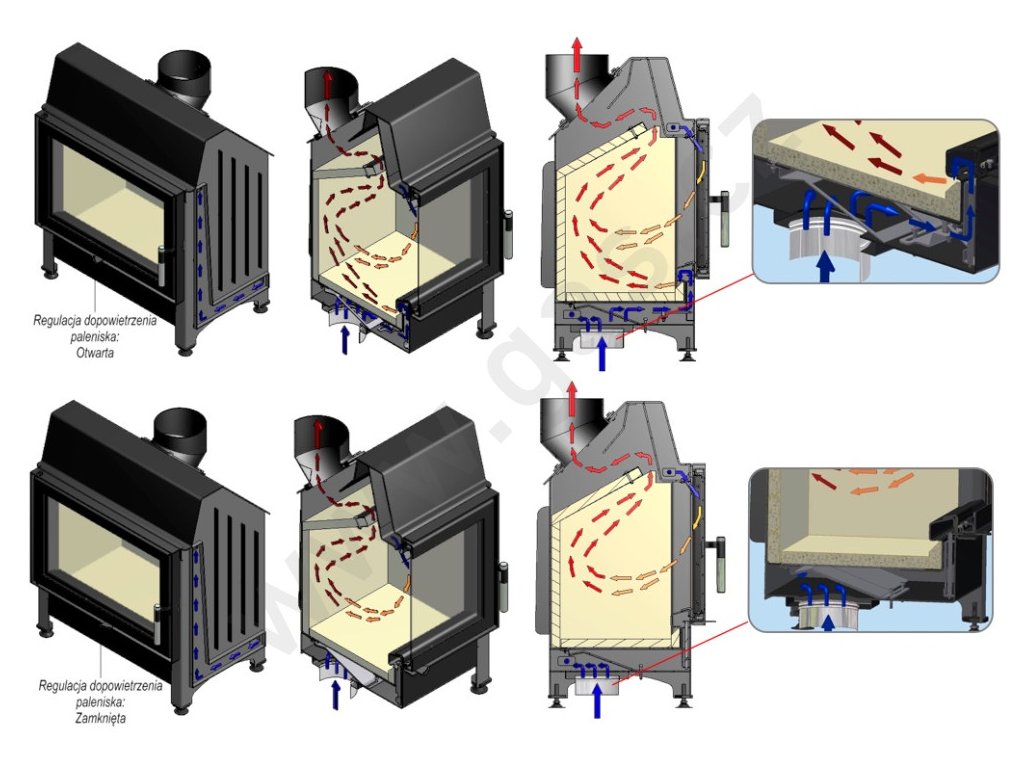 Teplovzdušná krbová vložka Kratki MBM 10 Gilotina čelní prosklení výsuvné