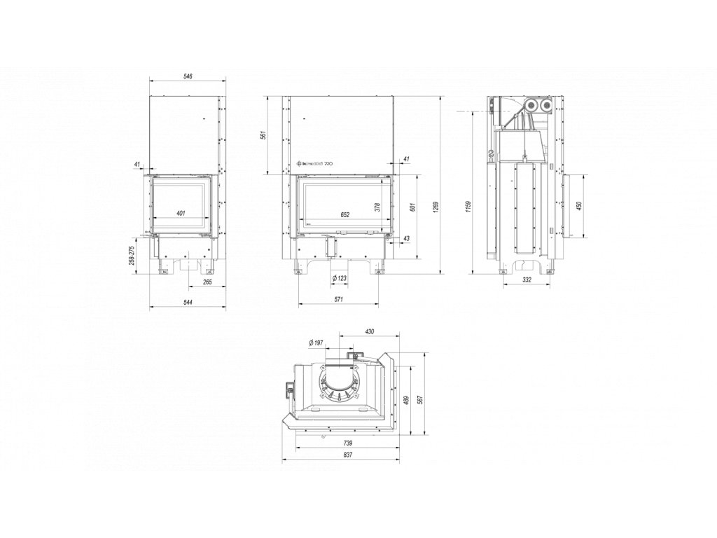 Vložka je ve standartní verzi s jednoduchým prosklením v designu glass. Velká spalovací komora s vystýlkou Acumotte. Vložka je bez roštu – úplné spálení dřeva na nejjemnější popel. Spodní deska topeniště je výrazně snížena oproti dvířkám (palivo je umístěno pod ohradníkem a vzduchovou lištou). Dvířka vyrobená z uzavřeného profilu díky tomu jsou stabilnější a odolnější k pnutí při provozu za vysokých teplot