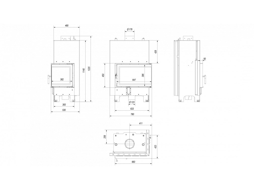 - Vložka je bez roštu – úplné spálení dřeva na nejjemnější popel