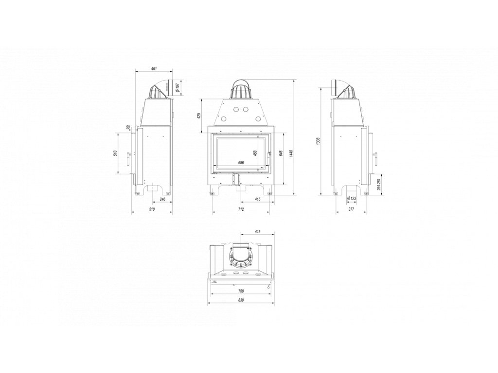 Teplovzdušná krbová vložka Kratki MBO 15 čelní prosklení