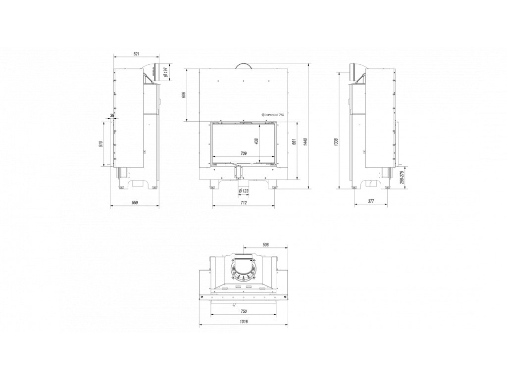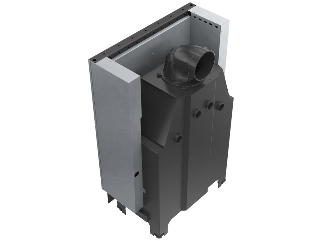 - krbová vložka má také vzduchovou clonu - systém čistého skla - vzduch je dodáván speciálními kanály na boku krbové vložky do komory v horní části, kde se vzduch rovnoměrně rozkládá po celé šířce skla. Vzduch oplachuje sklo, odsouvá oheň a kouř a tím výrazně snižuje ukládání sazí.