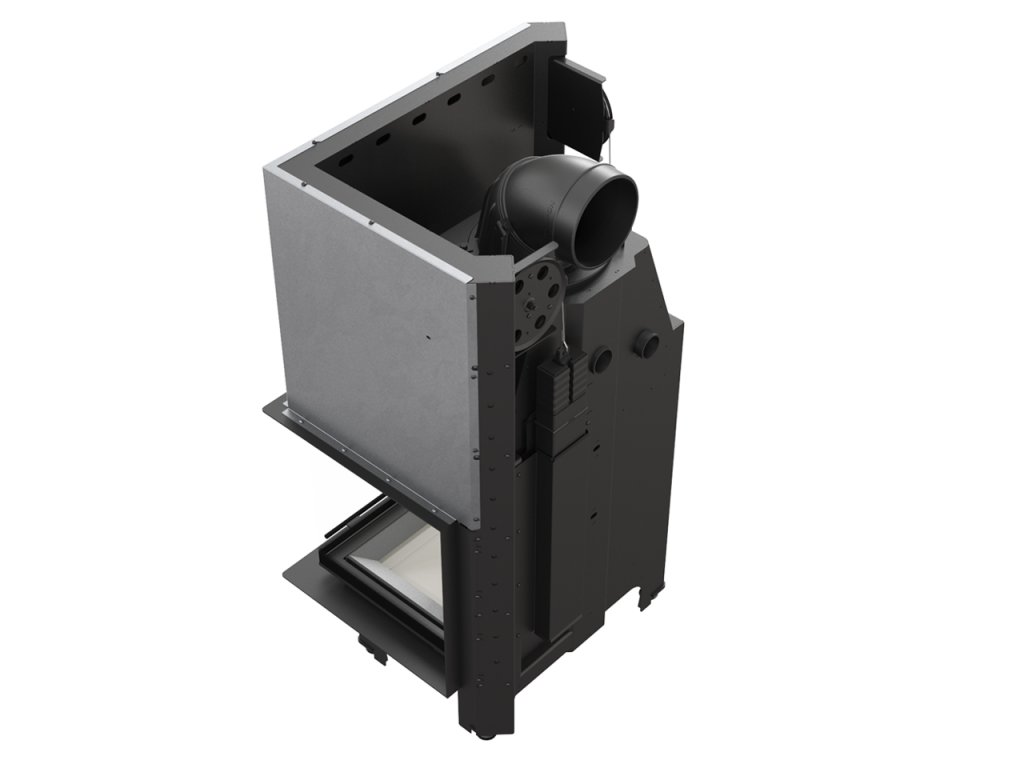 Teplovzdušná krbová vložka Kratki MBO 15 P BS SG Gilotina (BLACK) pravé boční prosklení ohýbané sklo výsuvné