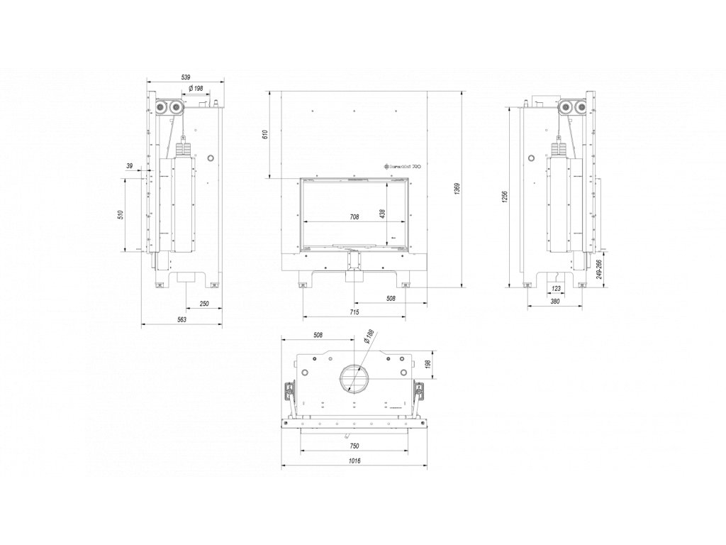 Krbová vložka MBO rovné prosklení s výsuvem a výměníkem 15 kW Vložka je bez roštu – úplné spálení dřeva na nejjemnější popel Spodní deska topeniště je výrazně snížena oproti dvířkám (palivo je umístěno pod ohradníkem a vzduchovou lištou).