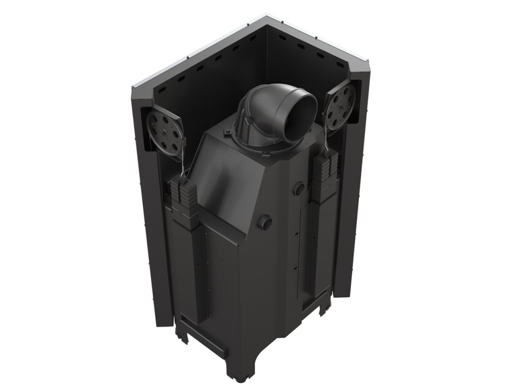 Teplovzdušná krbová vložka Kratki MBZ 13 L BS Gilotina levé boční prosklení výsuvné