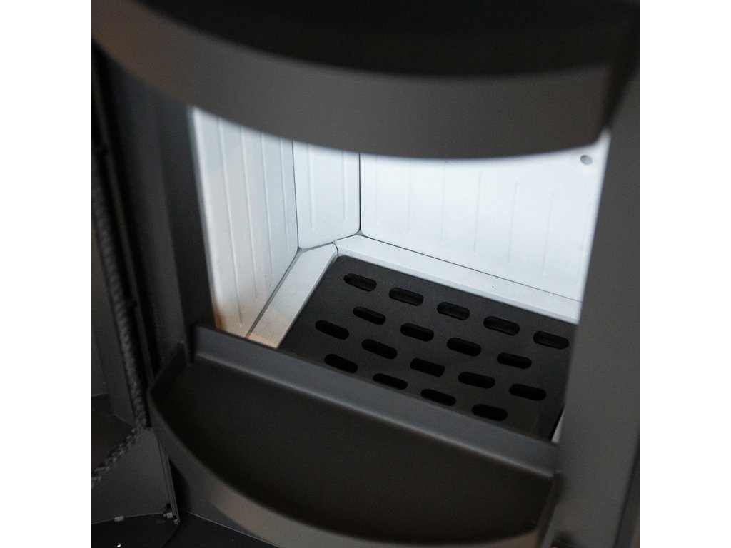 - Kamna jsou vybavena odnímatelným ocelovým popelníkem ve formě nádoby umístěné v topeništi pod litinovým roštem