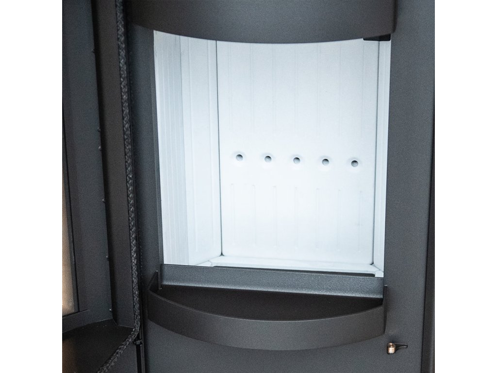 - Zabraňuje rozsypávání popela do místnosti při doplňování paliva nebo čištění spotřebiče.