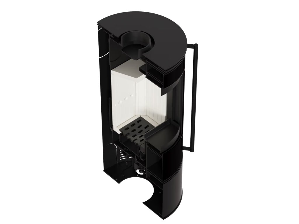 - Zajišťuje rovnoměrné a efektivní spalování dřeva, což vede k lepšímu využití paliva a zvýšení tepelné účinnosti.