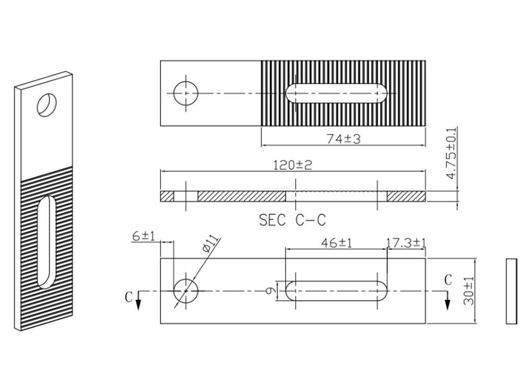 Montážní adaptér / plochý držák pro fotovoltaiku s drážkou 120X30X4,75 mm, nerez
