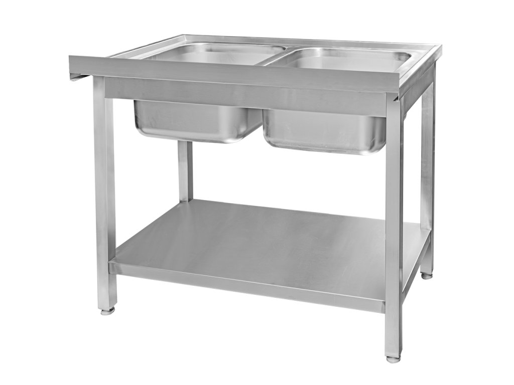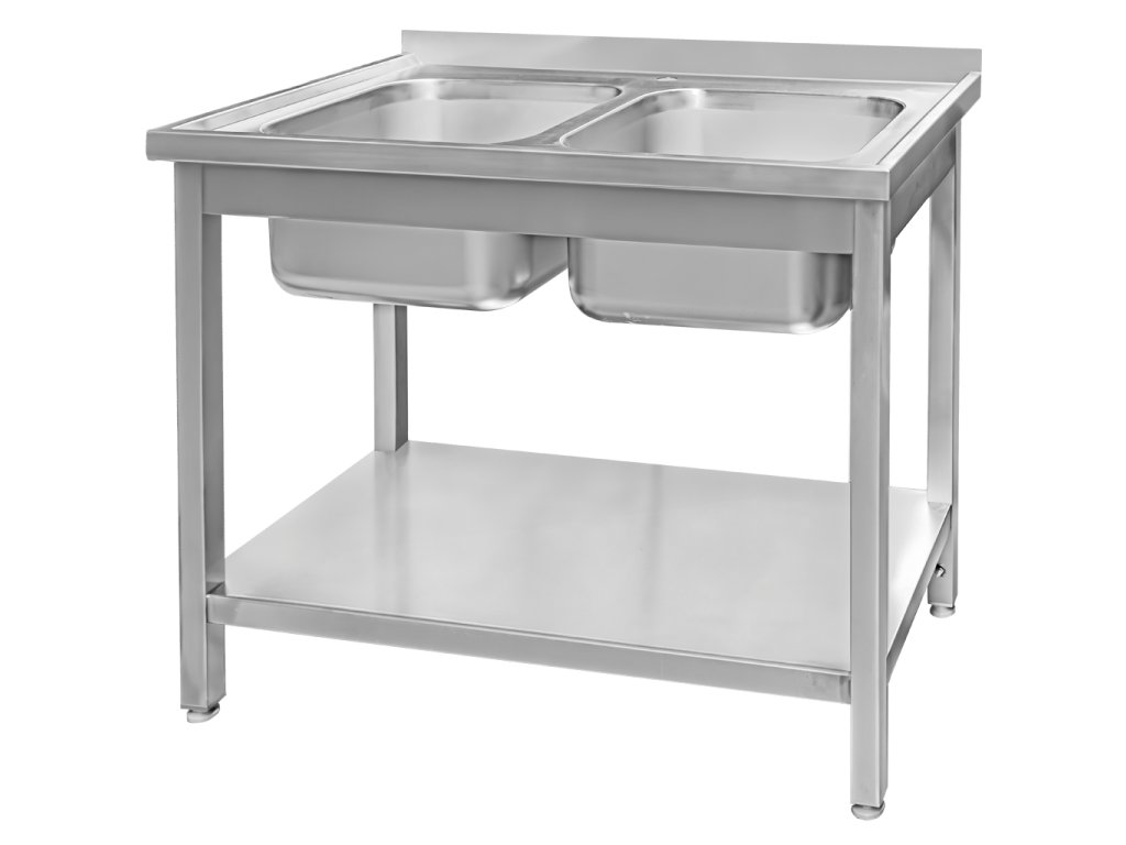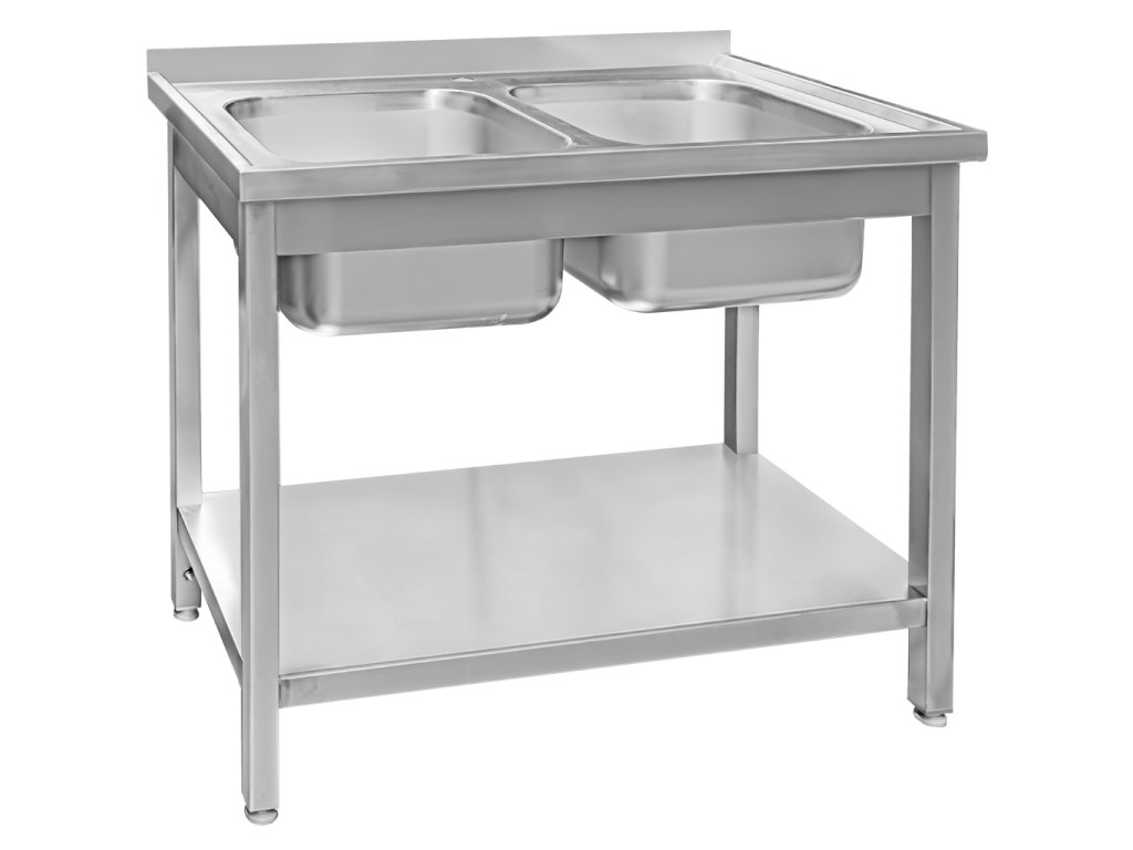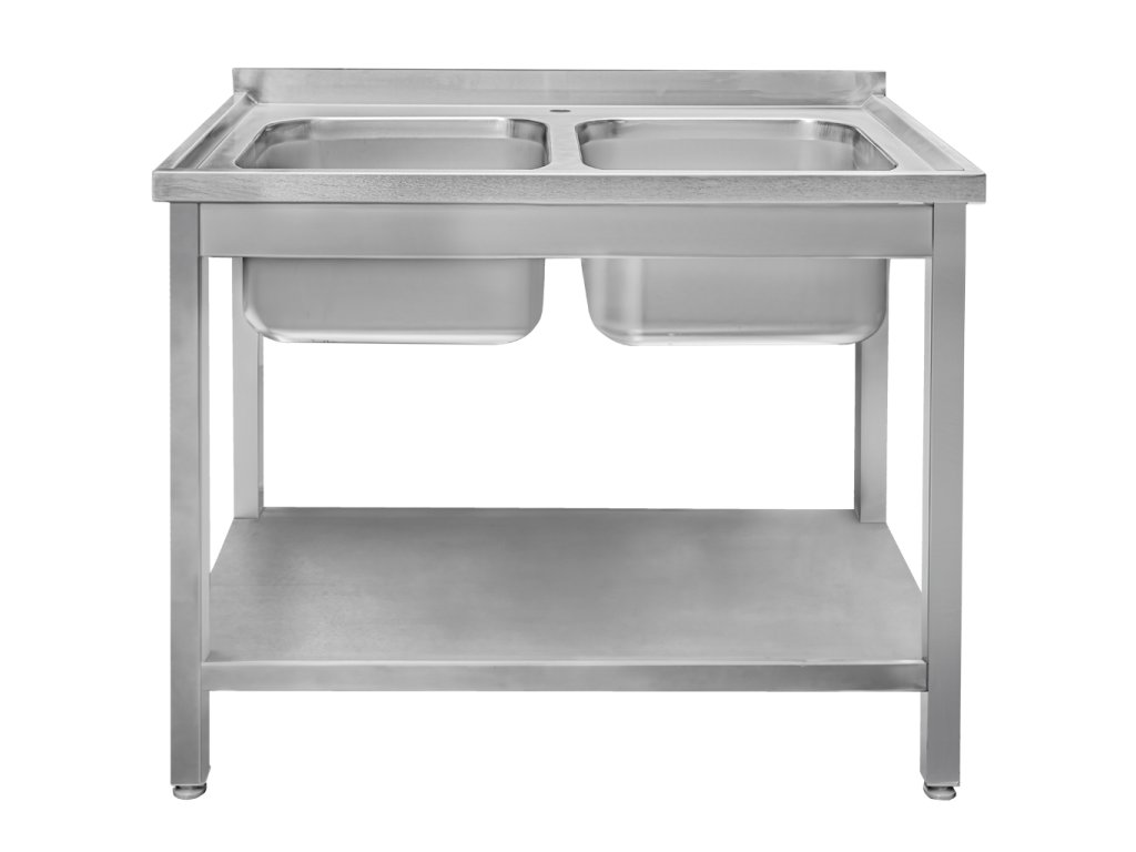Svařovaný gastronomický dvoudřez s policí 100x60x85 cm