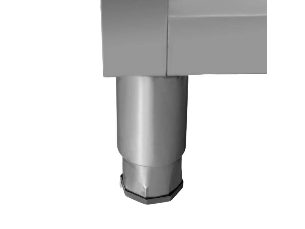 Dvoukomorový gastronomický dvoudřez s posuvnými dvířky je vyroben ze špičkové nerezové oceli, která splňuje veškeré sanitární a hygienické požadavky. Dvě prostorné komory umožňují pohodlné mytí a oplachování velkých hrnců a plechů na pečení. Díky spodní vestavěné polici můžeme ukládat kuchyňské náčiní, jako je nádobí, hrnce, pánve, potřebné pro práci.