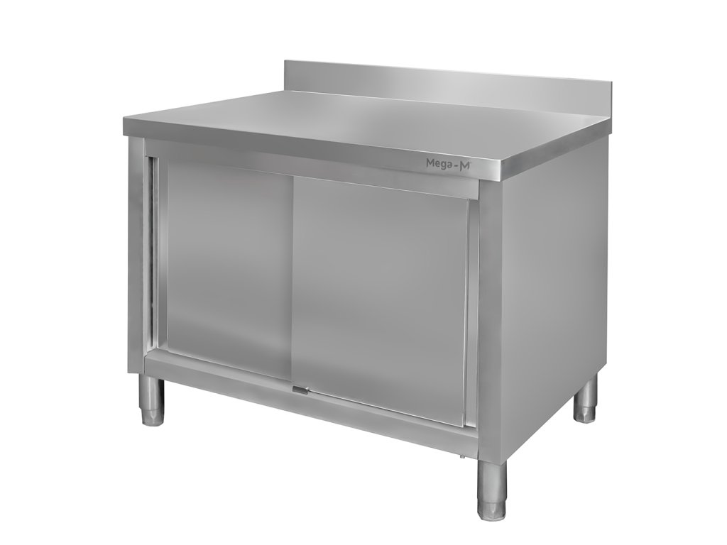 Nerezový pracovní stůl se skříňkou a okrajem – 120 × 70 × 85 cmTento pracovní stůl z nerezové oceli AISI 304 (0,6 mm) o rozměrech 120 × 70 cm je navržen pro intenzivní provozy, kde se klade důraz na hygienu, odolnost a ergonomii práce. 10 cm vysoký okraj účinně chrání stěnu před znečištěním, zatímco vestavěná spodní police nabízí velký úložný prostor. Nastavitelné nožičky zajišťují stabilitu i na nerovném povrchu a easy-clean povrch umožňuje rychlou údržbu.