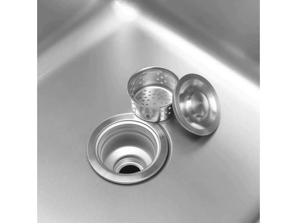 - Dřezová mísa vlevo: 50 × 40 × 25 cm, hluboká komora pro velké nádoby a plechy