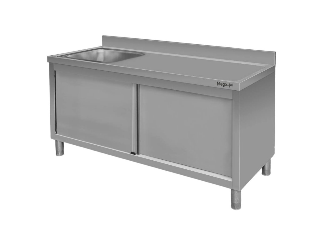 Nerezový stůl 160×60×85 cm s dřezem na levé straně a skříňkou – odolný a praktický pomocník do každé kuchyněNerezový stůl je navržen pro intenzivní provoz v profesionálních kuchyních, restauracích, školních jídelnách nebo potravinářských provozech. Spojuje ergonomii, vysokou odolnost a snadnou údržbu, což z něj činí ideální vybavení pro moderní gastro zařízení.