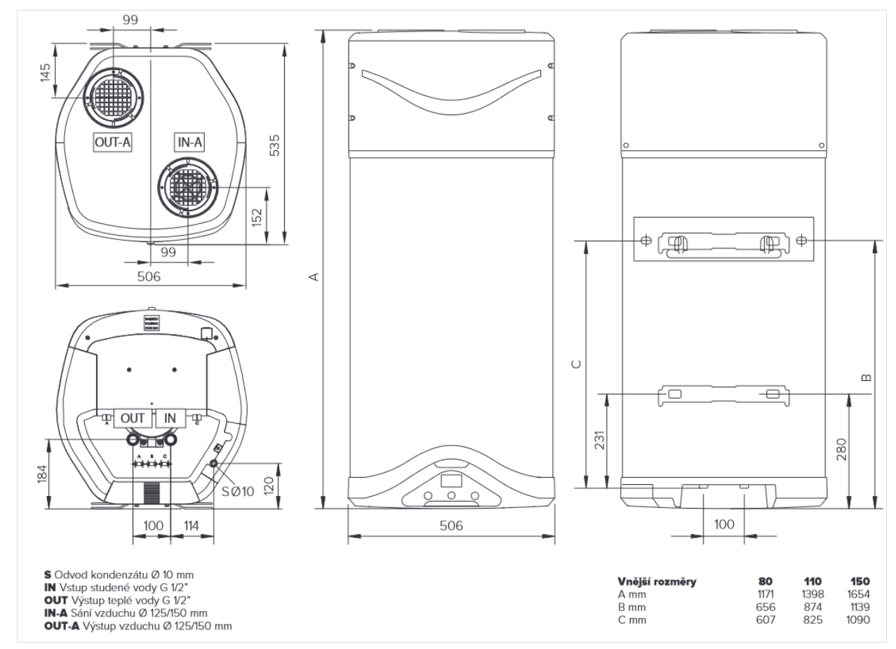 | technické parametry NUOS EVO A+ | 80 | 110 | 150 |