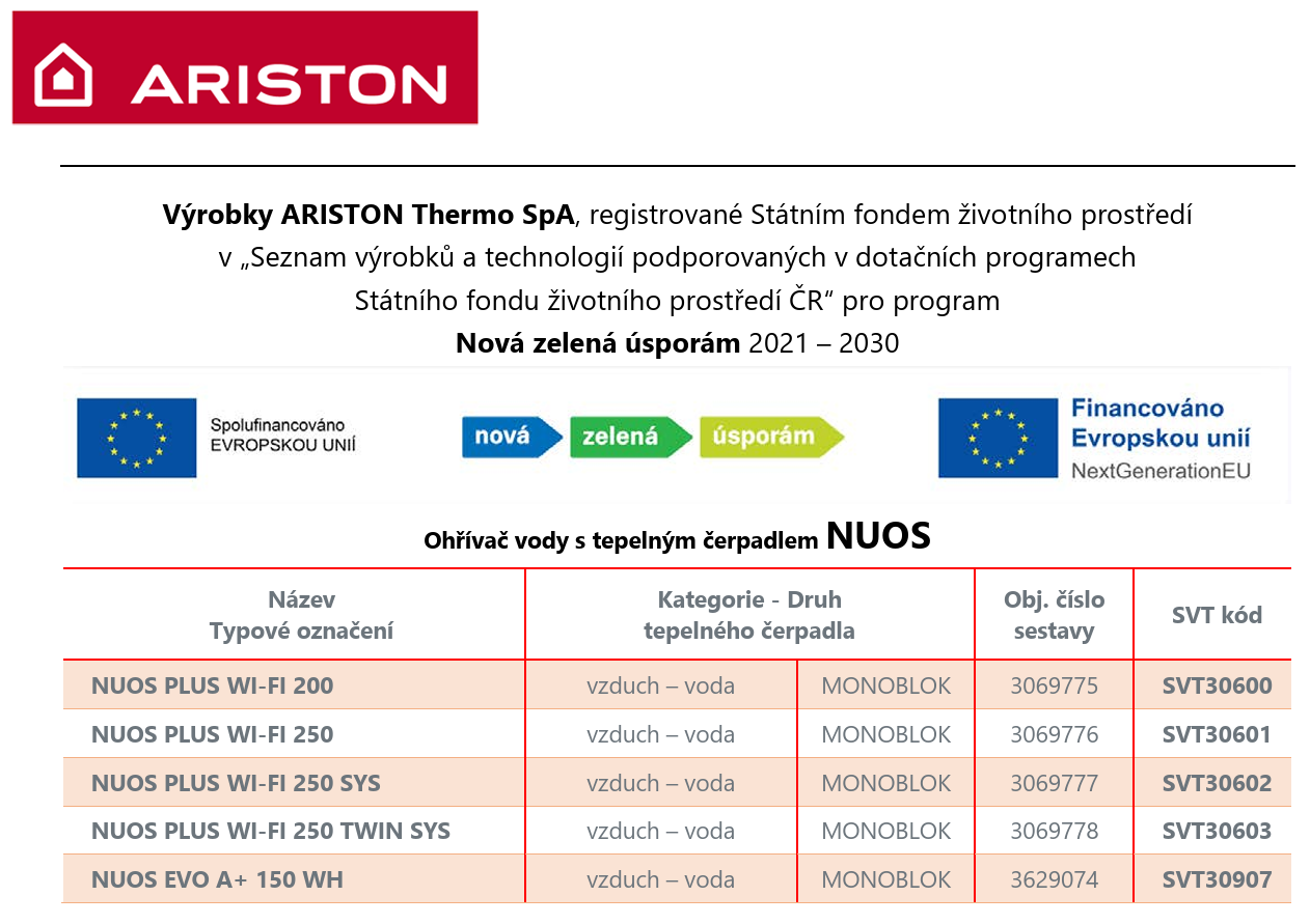 Ohřev vody s tepelným čerpadlem ARISTON NUOS EVO A+